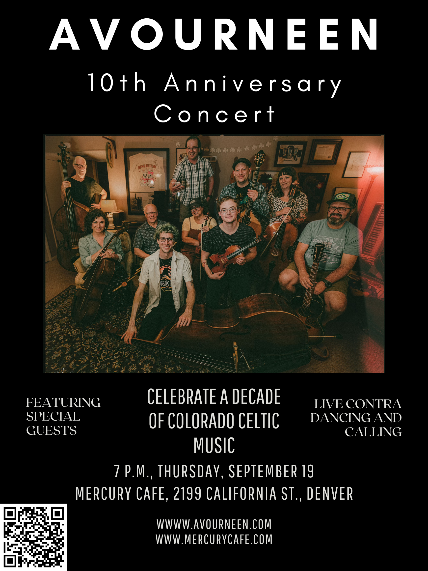 Avourneen will celebrate a decade of Celtic music in Denver during a special show at the Mercury Café on Thursday, Sept. 19. The performance will feature new music, special guests and live contra dancing, and will reflect music selections from Avourneen’s 10-year history. Tickets start at $23, and can be purchased in advance at http://www.mercurycafe.com.