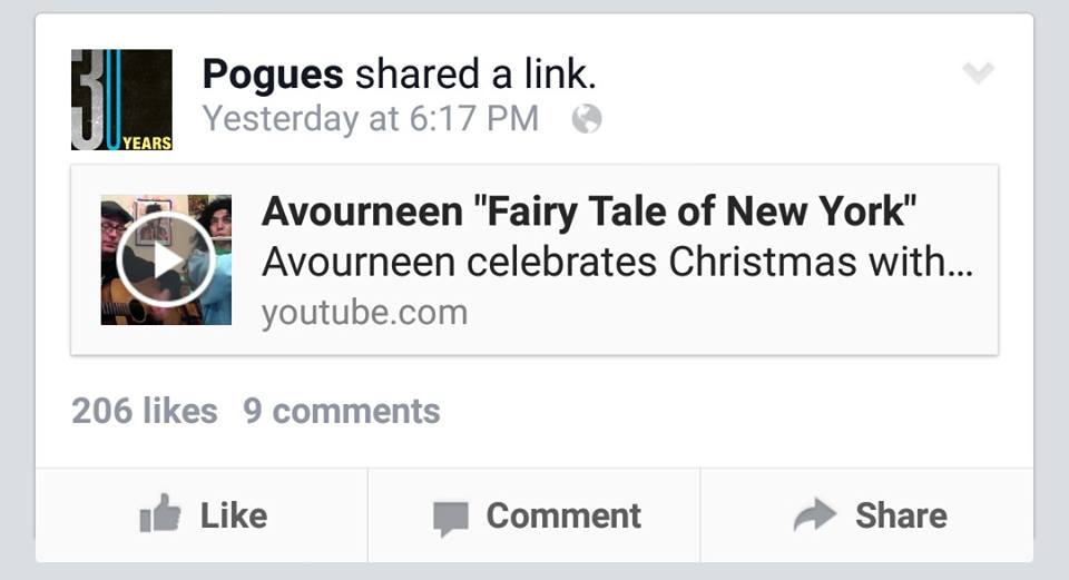 We were honored to receive a shout-out from the Pogues themselves on Facebook, complete with a link to this website and a mention of our Saturday gig at the Abbey. All three of us have been listening to the Pogues for years, and the recognition was definitely one of the high points in our short history.